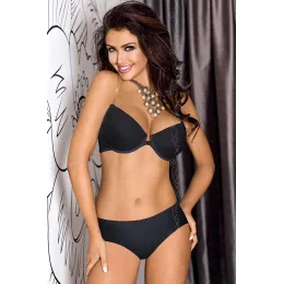 Elegantní černá podprsenka se silikonovými průhlednými zády - ideální pod vypasované oblečení s odhalenými zády. Zaručuje dokonalý efekt a nejvyšší komfort. Podprsenka má odnímatelné zvětšující vycpávky, přední zapínání a odnímatelná, nastavitelná silikonová ramínka.