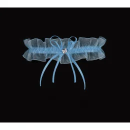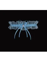 Modrý podvazek z jemného šifonu, zdobený saténovou mašlí s třpytivým korálkem, zevnitř podšitý silikonem.