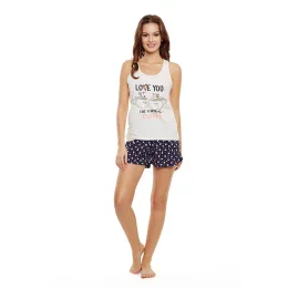 Růžové a tmavě modré pyžamo s potiskem. Součástí je tričko se šlemi a krátké šortky s pružným pasem. Měkký, jemný materiál. Pyžamo ideální na léto.