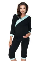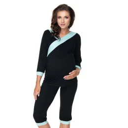 Těhotenská a kojící pyžama. Kalhoty s netlačícím panelem. Lze nosit i po těhotenství. Nohavice s žebrovaným pasem.