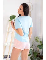 Sladké dvoudílné pyžamo s halenkou s krátkým rukávem a šortkami v ceně. V pastelových, modrých a růžových barvách. V současnosti módní plameňák s nápisem "I'm too cute" uprostřed. Sportovní pruhované šortky s lemováním kolem stehen.