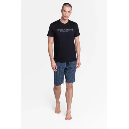 Skvělé pánské pyžamo v atraktivní barvě. Sportovní, pohodlná verze, kombinovaná s kalhotami v délce pod kolena s módním kostkovaným vzorem. Černé tričko s potiskem uprostřed vám umožní vypadat skvěle a zároveň být v plném pohodlí a kalhoty se zajímavým klasickým vzorem jsou zde zajímavým akcentem.