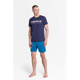 Sportovní styl, nadčasové barvy a měkká bavlna - to je dokonalý úvod do pohodlného pánského pyžama. Klasické tričko s krátkým rukávem a potiskem uprostřed doplňují hladké šortky v délce ke kolenům. Nejnovější kolekce. . Velikost M: hrudník 94-98 cm, boky 98-102 cm