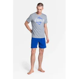 Lars - je dvoudílné pyžamo v šedé a modré barvě s šortkami pod kolena z nadčasové řady Core značky Henderson. Najdete zde měkké, na dotek příjemné látky, pohodlné střihy a potisky, které dodávají vzorům charakter.