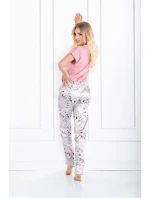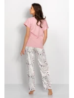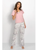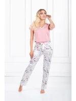 Elegantní dvoudílné pyžamo, ve kterém budete působit výjimečně žensky. Jejím tajemstvím jsou kalhoty z mimořádně krásného stříbřitého saténu, který je pokrytý jemným květinovým motivem v pastelových barvách. Květiny s akvarelovým efektem vypadají jednoduše fenomenálně a upoutají pozornost. Střih je volný, pohodlný a tvarovaný. Tričko v jemné pudrově růžové barvě zakončené saténovým lemem na výstřihu do V. Vysoká kvalita.