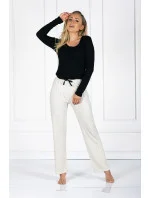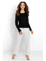 Pohodlné módní dámské pyžamo Momenti Per Me Naomi Black-Ecru. Model s dlouhými rukávy a dlouhými kalhotami v kontrastních barvách. Vrchní díl klasického střihu, spodní díl s volnějšími nohavicemi a černou mašlí v pase.