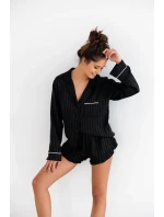 Dámské pruhované pyžamo z vysoce kvalitní viskózy. Rozepnutá halenka s límečkem. Doplňují je krátké šortky s ozdobnou saténovou mašlí v pase.