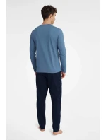Pánské pyžamo sestávající z trička a kalhot. Tričko s dlouhými rukávy a půlkulatým výstřihem. Dlouhé kalhoty s elastickým pasem.