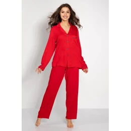 Tato dámská pyžama jsou kvintesencí pohodlí a elegance. Skládá se z košile s dlouhými rukávy na knoflíky a dlouhých kalhot s pružným pasem. Výstřih do V dodává jemnost a elegantní lemy (lemování) ozvláštňují vzhled. Hladká tkanina je měkká, prodyšná a nedráždivá pro pohodlný spánek. Náprsní kapsa je praktickým doplňkem a volný střih zaručuje volnost pohybu. Díky jedinečnému designu a pohodlí je toto pyžamo také skvělým nápadem na dárek.