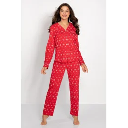 Připravte se na sváteční atmosféru v pyžamu Letters To Santa. Toto dvoudílné pyžamo je ideální volbou, která vám zajistí pohodlí a styl. Toto pyžamo je vyrobeno z vysoce kvalitní bavlny a je nejen měkké a jemné k pokožce, ale také hypoalergenní, takže je ideální pro osoby s citlivou pokožkou. Nezpůsobuje žádné podráždění a umožňuje vaší pokožce dýchat. Blůza s dlouhými rukávy má elegantní výstřih do V a ozdobné lemování. Zapínání na knoflíky umožňuje přizpůsobit si halenku podle svých představ. Kromě toho je na úrovni hrudníku praktická kapsa. Toto pyžamo má tvarovaný střih, který zvýrazní vaši ženskou siluetu. Po vyprání se nedeformuje, takže si můžete být jisti, že vám vydrží mnoho sezón. Pyžamo Letters To Santa bylo navrženo a ušito v Polsku. Nyní si můžete užít svátky v pohodlném a stylovém oblečení. Přidejte si pyžamo Letters To Santa do své sbírky hned teď a užívejte si pohodlí a elegance v jednom!
