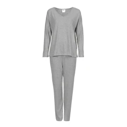 Dámský dvoudílný pyžamový set, který kombinuje eleganci s maximálním pohodlím. Košile s dlouhým rukávem a V výstřihem je navržena v nadměrném volném střihu, což z ní činí skvělou volbou pro ženy s větším poprsím, poskytující volnost a pohodlí při nošení. Hladká látka v jemných barvách dodává subtilitu a eleganci, díky čemuž se pyžamo hodí i jako stylový domácí oděv. Kalhoty s dlouhými přiléhavými nohavicemi ve střihu slim zdůrazňují postavu, a elastický pás zajišťuje ideální přizpůsobení každé postavě. Bez kapes mají minimalistický charakter. Kvalitní jemný materiál zaručuje trvanlivost a pohodlí při nošení, vytvářející harmonický celek s košilí. Elegantní střih a regulérní střih dělají tento set ideální volbou pro ženy, které si cení pohodlí, styl a univerzálnost.