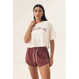 Dámský pyžamo je ideální kombinací pohodlí a stylu. Vyrobena z měkkého a příjemného na dotek materiálu, poskytuje pohodlí během spánku a relaxace v domácím útulku. Tričko s krátkým rukávem má klasický, kulatý výstřih a jeho minimalistický design oživuje módní nápis. Skvěle poslouží nejen jako součást nočního oblečení, ale také jako pohodlné domácí oblečení. Krátké šortky s šňůrkami v pasu a elastickým pásem zaručují ideální přizpůsobení a volnost pohybu. Absence kapes udržuje střih lehký a pohodlný. Je to skvělá volba pro ženy, které si cení pohodlí a módního vzhledu i v domácím prostředí!