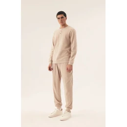 Mužský pyžamový set, který spojuje pohodlí s elegantním stylem, ideální jak na noční odpočinek, tak na relaxaci doma. Mikina s dlouhým rukávem se zapínáním na tři knoflíky vpředu nabízí volný, pohodlný střih, který zajišťuje plnou volnost pohybu. Dlouhé rukávy a piké vzor látky dodávají celku moderní charakter. Dlouhé kalhoty mají nohavice zakončené elastickým lemem, co zajišťuje pohodlí a dobře se přizpůsobuje postavě. V pasu je gumový pásek a šňůrky, které umožňují ideální přizpůsobení pyžama individuálním potřebám. Vyrobený z měkké, prodyšné látky, pyžamo zajišťuje pohodlí a umožňuje kůži dýchat. Skvělá volba pro muže, kteří si cení pohodlí a stylu v každé situaci! Měření: Velikost M: hrudník 94-98 cm, boky 98-102 cm Velikost L: hrudník 98-102 cm, boky 102-106 cm Velikost XL: hrudník 102-106 cm, boky 106-110 cm Velikost XXL: hrudník 106-110 cm, boky 110-114 cm Velikost XXXL: hrudník 114-120 cm, boky 114-118 cm