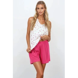 Tato lehká a ženská dámská pyžama je ideální volbou na teplé noci a relaxační chvíle v domácím útulku. Sada se skládá ze dvou částí: topu na ramínka s výstřihem typu U a jednobarevných kraťasek s pohodlným elastickým páskem v pasu. Top je zdoben jemným potiskem, který celému outfitu dodává jemný šarm. Pyžamo je vyrobeno z elastického, hypoalergenního materiálu, který poskytuje maximální pohodlí a je příjemný i pro citlivou pokožku. Volný, ale elegantní střih zdůrazňuje ženskou siluetu, aniž by omezoval pohyb. Jemná barevnost dodává celku lehkost a svěžest. Sada je charakterizována vysokou kvalitou zpracování, což z ní činí nejen praktickou volbu na každý den, ale také skvělým nápadem na dárek. Ideální pyžamo pro ženy, které si cení stylu, pohodlí a funkčnosti. Složení: Horní část: 100% bavlna Dolní část: 95% viskóza, 5% elastan