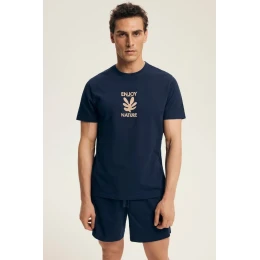 Pohodlná dámská pyžama s volným střihem, ideální pro spaní a relaxaci doma. Tričko s krátkým rukávem, kulatým výstřihem a potiskem dodává celku módní, ležérní charakter. Krátké kalhoty bez kapes zajišťují pohodlí, a široký gumový pás s šňůrkami umožňuje dokonale přizpůsobit pyžamo postavě. Souprava je balena v krabici, což ji činí také praktickým dárkem.