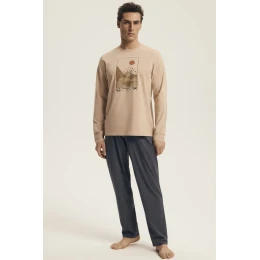 Pohodlný pánský pyžamový set s volným, pohodlným střihem, ideální pro spaní a relaxaci doma. Tričko s dlouhým rukávem, kulatým výstřihem a potiskem dodává celku moderní, ležérní charakter. Dlouhé kalhoty bez kapes zajišťují volnost pohybu, a široký elastický pás s potiskem zaručuje ideální přizpůsobení a pohodlí nošení. Set je balen v krabici, což ho činí skvělým praktickým dárkem. Rozměry: Velikost M: Prsa 94-98 cm, boky 98-102 cm Velikost L: Prsa 98-102 cm, boky 102-106 cm Velikost XL: Prsa 102-106 cm, boky 106-110 cm Velikost XXL: Prsa 106-110 cm, boky 110-114 cm Velikost XXXL: Prsa 114-120 cm, boky 114-118 cm