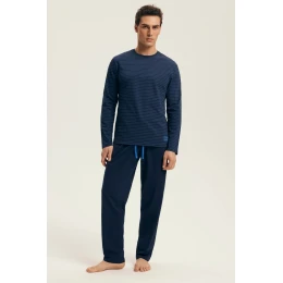 Pohodlný pánský pyžamový set s volným střihem, ideální pro spaní a relaxaci doma. Tričko s dlouhým rukávem a kulatým výstřihem v módním pruhovaném vzoru dodává sestavě klasický, ležérní charakter. Dlouhé kalhoty s širokým pásem a šňůrkami v pase zajistí pohodlné padnutí a volnost pohybu. Set je balen v krabici, takže se skvěle hodí také jako praktický dárek. Rozměry: Velikost M: Obvod hrudníku 94-98 cm, obvod boků 98-102 cm Velikost L: Obvod hrudníku 98-102 cm, obvod boků 102-106 cm Velikost XL: Obvod hrudníku 102-106 cm, obvod boků 106-110 cm Velikost XXL: Obvod hrudníku 106-110 cm, obvod boků 110-114 cm Velikost XXXL: Obvod hrudníku 114-120 cm, obvod boků 114-118 cm