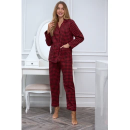 Bavlněná dámská pyžama v kostkovaném provedení X-MAS je klasický set vytvořený s ohledem na chladné večery a útulná rána. Výrazný červený kostkovaný vzor v kombinaci s měkkou, prodyšnou bavlnou dodává pyžamu nadčasový zimní charakter. Košile s knoflíky a kalhoty s rovným střihem zajistí plnou volnost pohybu a pohodlí při nošení. Pečlivě zpracované detaily, jako kontrastní lem nebo praktické kapsy, zdůrazňují jak funkčnost, tak estetiku setu. Je to pyžama, která spojuje tradiční styl s pohodlím, ideální pro klidné chvíle v domácím útulku. Klasický kostkovaný vzor v odstínech červené a černé nadčasový, vánoční charakter. Pyžama X-MAS skvěle zapadá do zimní atmosféry, ideální na lenivé ráno s šálkem horkého čaje, večerní filmové večery nebo vánoční chvíle klidu. Zajišťuje pohodlí a styl v každém domácím okamžiku. Každý model Pure Sin je vyroben z vysoce kvalitních materiálů, s důrazem na nejmenší detaily, ideální pro ženskou postavu a precizní zpracování. Je to prádlo, které okouzlí svou formou a zajišťuje pohodlí nošení, protože smyslnost si zaslouží dokonalé provedení.