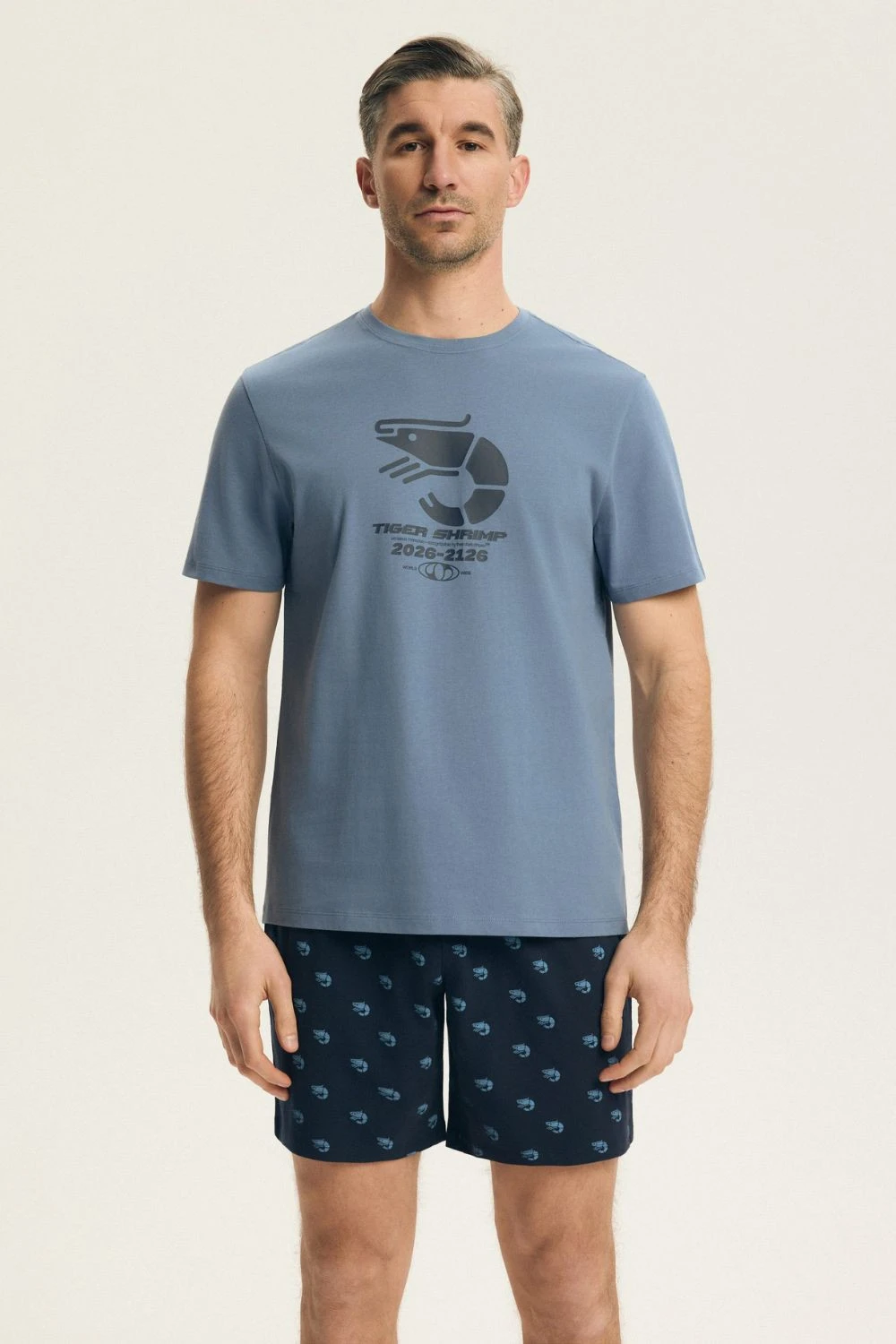 Pohodlný a stylový pánský pyžamový set je ideální volbou pro pohodlný spánek a relaxaci v domácím útulku. Tričko s kulatým výstřihem a krátkým rukávem poskytuje volnost pohybu a klasický, nadčasový vzhled. Potisk na přední straně dodává celku charakter a moderní akcent. Souprava je vyrobena z měkké a prodyšné látky, která je příjemná k pokožce a zajišťuje správnou cirkulaci vzduchu během celé noci. Kraťasy s potiskem skvěle doplňují tričko, vytvářejíce souvislý outfit. Bez kapes zaručuje lehkost a pohodlí, a široký elastický pás zajišťuje dobré přizpůsobení a pohodlí nošení bez stlačení. Toto je praktická nabídka pro muže, kteří oceňují pohodlí a styl i v domácí verzi.