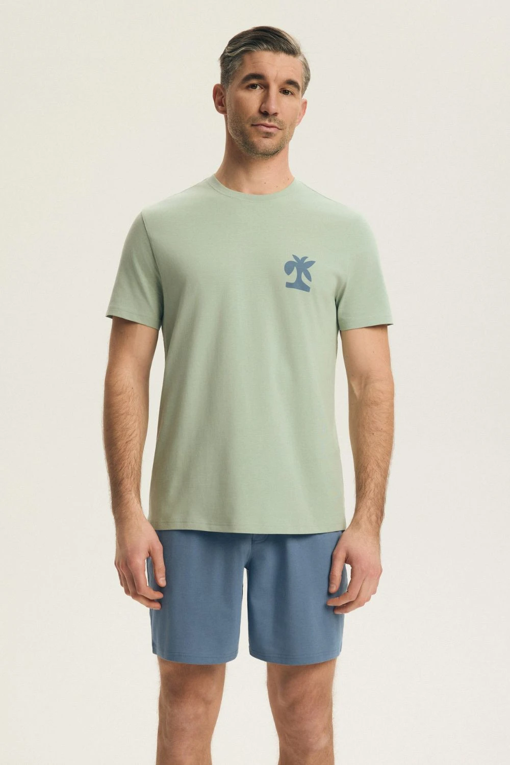 Pohodlný pánský pyžamový set navržený s ohledem na plnou volnost pohybu a pohodlí během spánku. Volný, pohodlný střih a měkká a prodyšná látka zajistí příjemný pocit lehkosti po celou noc. Tričko s krátkým rukávem a kulatým výstřihem zaručuje pohodlný a klasický vzhled, zatímco moderní potisk dodává pyžamu moderní charakter. Krátké kalhoty s širokým elastickým pasem zajistí dokonalé přizpůsobení a udrží plné pohodlí po celou dobu. Pyžamo je dodáváno v praktické a estetické krabičce, ideální jak pro sebe, tak jako dárek.