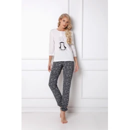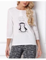 Hledáte něco výjimečného - rozhodněte se pro roztomilé dvoudílné dámské pyžamo s rozkošným motivem tučňáka na halence. Střih halenky vám poskytne skutečné pohodlí a skvělý vzhled - je mírně vypasovaná, s výstřihem na knoflíky a módními, mírně kratšími rukávy. Součástí kompletu jsou úhledné vzorované kalhoty s gumou. Design s jemnými lesklými prvky. Měkká tkanina, vysoká kvalita. Složení: 60 % bavlna, 40 % polyester.