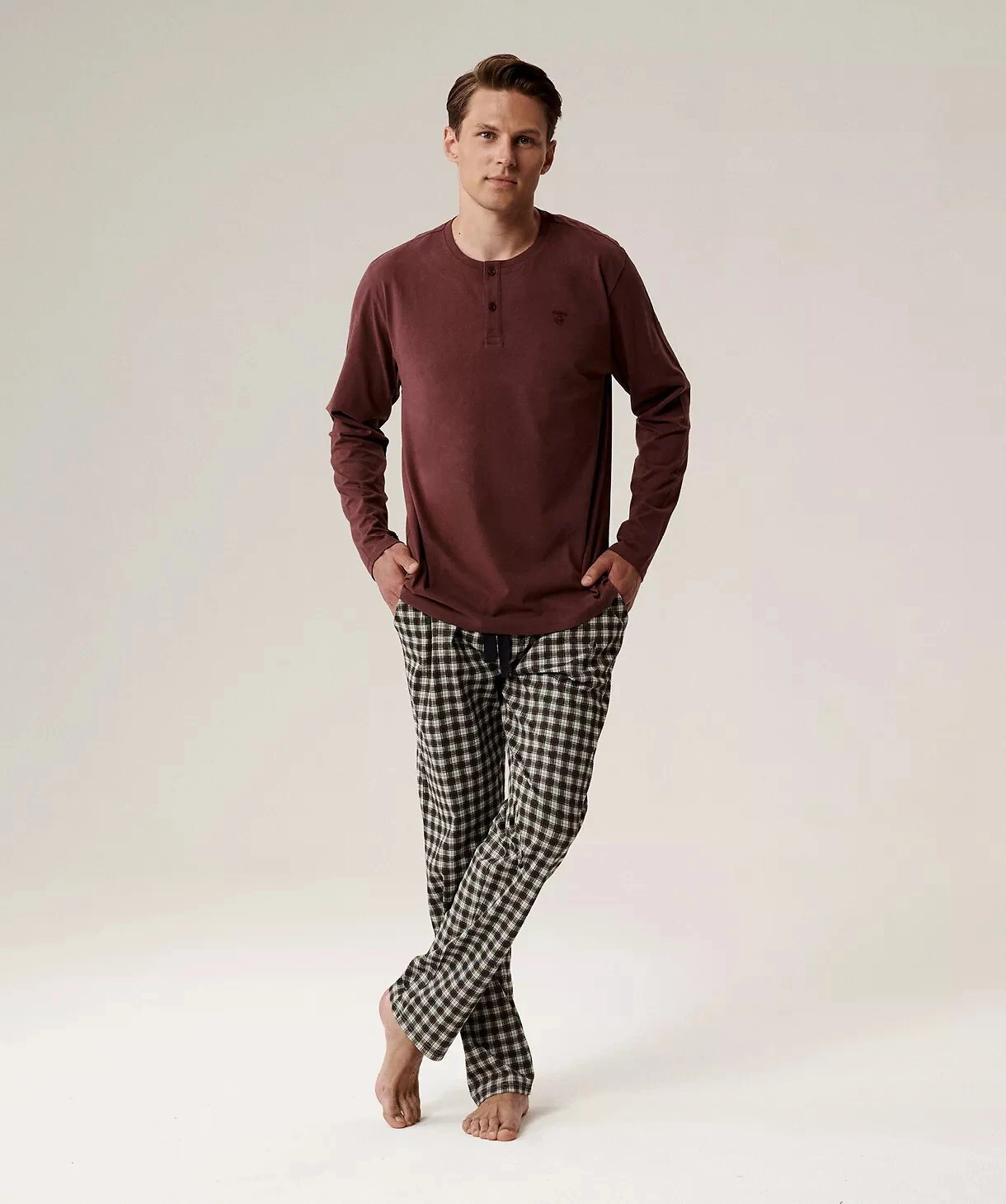 Složení: šedá barva: košile 65 % bavlna, 40 % polyester; kalhoty 100 % bavlna; vínová barva 100 % bavlna