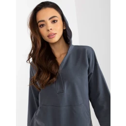 Jednobarevné bavlněné pyžamo v grafitové barvě s kapucí .