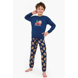 Chlapecké pyžamo Cornette BOY YOUNG DR 966/172 TEDDY 2 je ideální volbou pro chladné vánoční noci. Je vyrobeno z měkké, vysoce kvalitní 100% bavlny a zaručuje pohodlný spánek. Tričko s dlouhým rukávem bylo ozdobeno roztomilým potiskem vánočního medvídka, který se malým dětem jistě zalíbí. Souprava je doplněna dlouhými vzorovanými kalhotami. Elastické žebrování u výstřihu, manžet, spodní části trička a nohavic zaručuje dokonalé přizpůsobení. Celá souprava je balena v krabici – skvělý nápad na vánoční dárek pro chlapce.