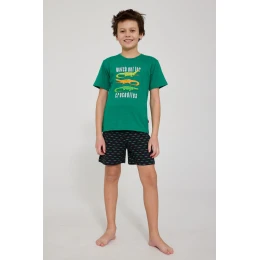 Chlapecké pyžamo CROCODILES je ideální volbou pro aktivní chlapce na letní večery. Je vyrobeno ze 100% kvalitní, měkké a prodyšné bavlny a poskytuje maximální pohodlí při spánku a volnost pohybu. Tričko s krátkým rukávem zdobí na přední straně barevný sportovní potisk, který dodává celému kompletu energický a moderní nádech.