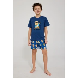 Součástí soupravy jsou krátké vzorované šortky, které zaručují volnost pohybu při spánku i domácím odpočinku. Pružný pásek zajišťuje dobré přizpůsobení bez otlaků. Pyžamo CAPYBARA 2 značky Cornette je kombinací funkčnosti, kvality a dětského stylu.