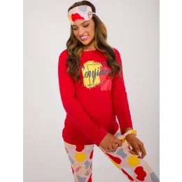 Míry pyžama velikosti S měřené na plocho: halenka: šířka v podpaží - 46 cm, délka rukávu - 62 cm, celková délka - 70 cm, kalhoty: šířka v pase - 30 cm, celková délka - 98 cm.