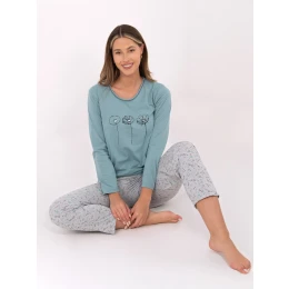 Rozměry pyžama velikosti M měřené na plocho: halenka: šířka v podpaží - 44 cm, délka rukávu - 60 cm, celková délka - 61 cm, šířka dole - 48 cm, kalhoty: šířka v pase - 31 cm (na plocho), šířka v pase - 54 cm (při natažení), šířka v bocích - 51 cm, celková délka - 97 cm.