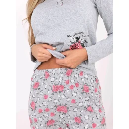 Rozměry pyžama velikosti M měřené na plocho: halenka: šířka v podpaží - 44 cm, délka rukávu - 58 cm, celková délka - 58 cm, šířka dole - 47 cm, kalhoty: šířka v pase - 32 cm (na plocho), šířka v pase - 65 cm (při natažení), šířka v bocích - 51 cm, celková délka - 97 cm.