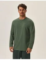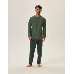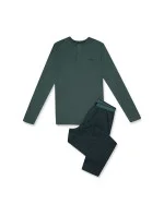 Třídílné dámské pyžamo HENDERSON HILLY s květinovým motivem. Toto pohodlné pyžamo se skládá z trička s krátkým rukávem a dlouhých nebo krátkých šortek. Světle růžové tričko se vyznačuje kulatým výstřihem a malou kapsičkou na levé straně hrudníku. Tmavě zelené krátké šortky s pohodlným elastickým pasem mají celoplošný květinový potisk. Tmavě zelené dlouhé kalhoty s nohavicemi zakončenými pružným lemem mají stejný tištěný květinový vzor. Pohodlný spánek zajišťuje použití 100% bavlny, díky níž je souprava mimořádně pohodlná a prodyšná.