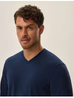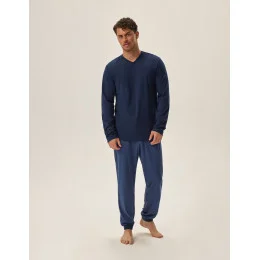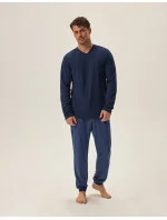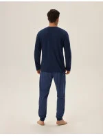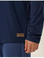 Szlafrok męski NOCTURN 43378 AW25 to połączenie klasycznego fasonu z wyjątkowym komfortem noszenia. Wykonany z miękkiego, przyjemnego w dotyku materiału, idealnie sprawdza się na chłodne poranki, wieczory lub po kąpieli. Kontrastowy kołnierz w ciemniejszym odcieniu dodaje mu stylowego charakteru. Duże kieszenie oraz praktyczne wiązanie w pasie zapewniają wygodę i funkcjonalność na co dzień. Głęboki granatowy kolor sprawia, że szlafrok prezentuje się bardzo elegancko i ponadczasowo.