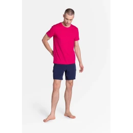 Žízeň po barvách - Leaf je senzační dvoudílné pánské pyžamo z nové kolekce známé značky Henderson, které vás okamžitě dostane do dobré nálady. Vrchní díl v intenzivní barvě, spodní díl v klidné, tmavě modré barvě. Překvapivé a velmi módní. Na tričku malý potisk (palmy). Složení: 100% bavlna.