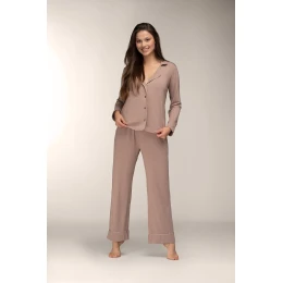 Pyžamo Mademoiselle Sommeil CC0153 Mocca Ease long/r S-XL pruhované