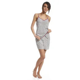 Stylové jarní pyžamo se složitými květinovými vzory, šedá barva elegantně kombinovaná s růžovou a ecru, halenka bez ramínek mírně přiléhající k tělu, šortky s gumičkou, složení: 50 % bavlna, 50 % modal.