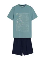 Pánské pyžamo 42598 Surf blue HENDERSON - z vysoce jakostní bavlny - tmavě modré tričko s krátkými rukávy - zdobené potiskem na přední straně - jednobarevné kraťasy - široký elastický pás