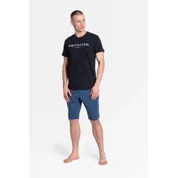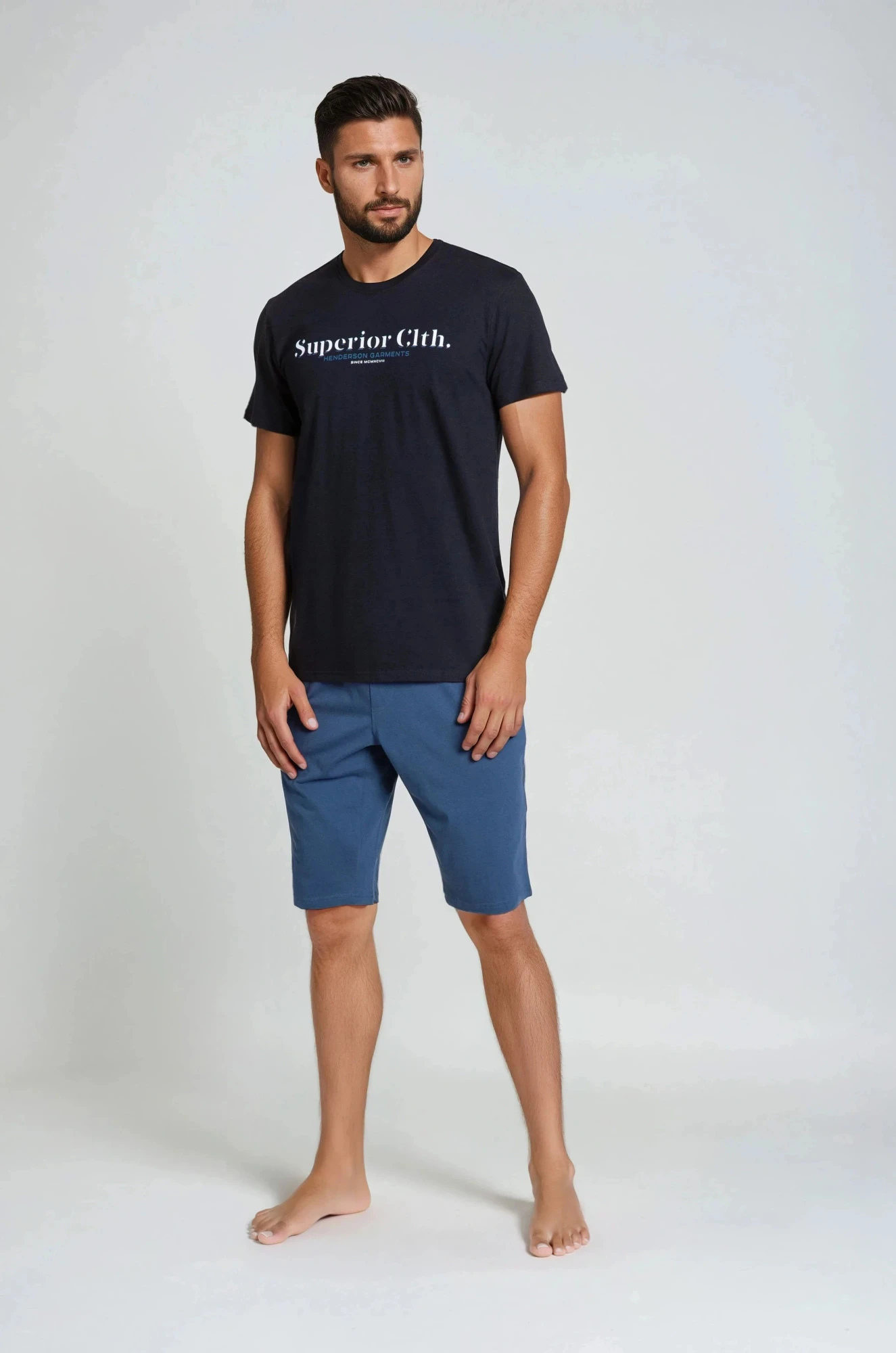 Pohodlné dvoudílné pyžamo z nové kolekce Henderson ve skvělém barevném provedení. Vrchní díl v podobě černého, pohodlného trička s potiskem. Grafitové kalhoty ke kolenům s módním akcentem v podobě elastického pásku s potiskem. Skvělý, sportovní vzhled, ve kterém se každý muž bude cítit pohodlně a uvolněně.