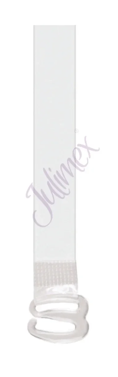 Popruhy široké 12 mm, vyrobené z průhledného, pro pokožku neutrálního materiálu. Svařované, aby byla zaručena pevnost spojení mezi háčkem a popruhem. Průhledný plastový háček.