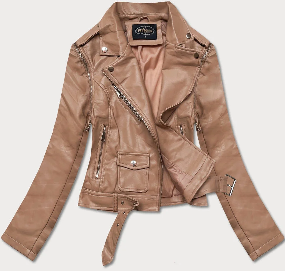Světle hnědá bunda ramoneska - vesta z eko kůže (FL202050)