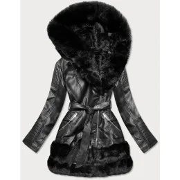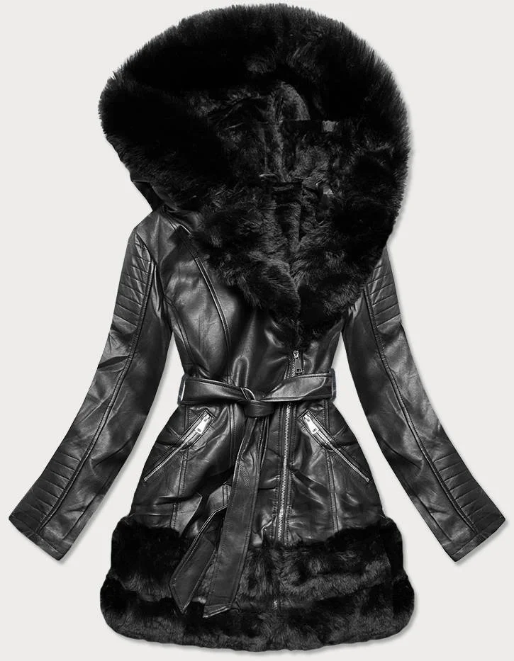 Černá dámská bunda ramoneska s kožešinovou podšívkou (b9736)