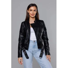 Bunda má jednoduchý střih, stojáček, čtyři kapsy a zapíná se zipem. Model má vyjímatelný pásek. Bunda má délku k bokům.