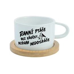 RANNÍ PTÁČE BEZ KÁVIČKY NIKAM NEDOSKÁČE - bílý hrníček makronka 200 ml