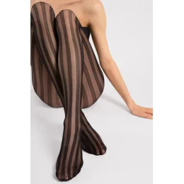 Grafické, svisle pruhované punčocháče, opticky zeštíhlující nohy. Moderní design pro zeštíhlující efekt - spodní část do tvaru písmene T a celoplošné punčochové kalhoty, díky čemuž se skvěle hodí i k minišatům a šortkám - kvalitní, matný úplet, materiály od renomovaných evropských dodavatelů.