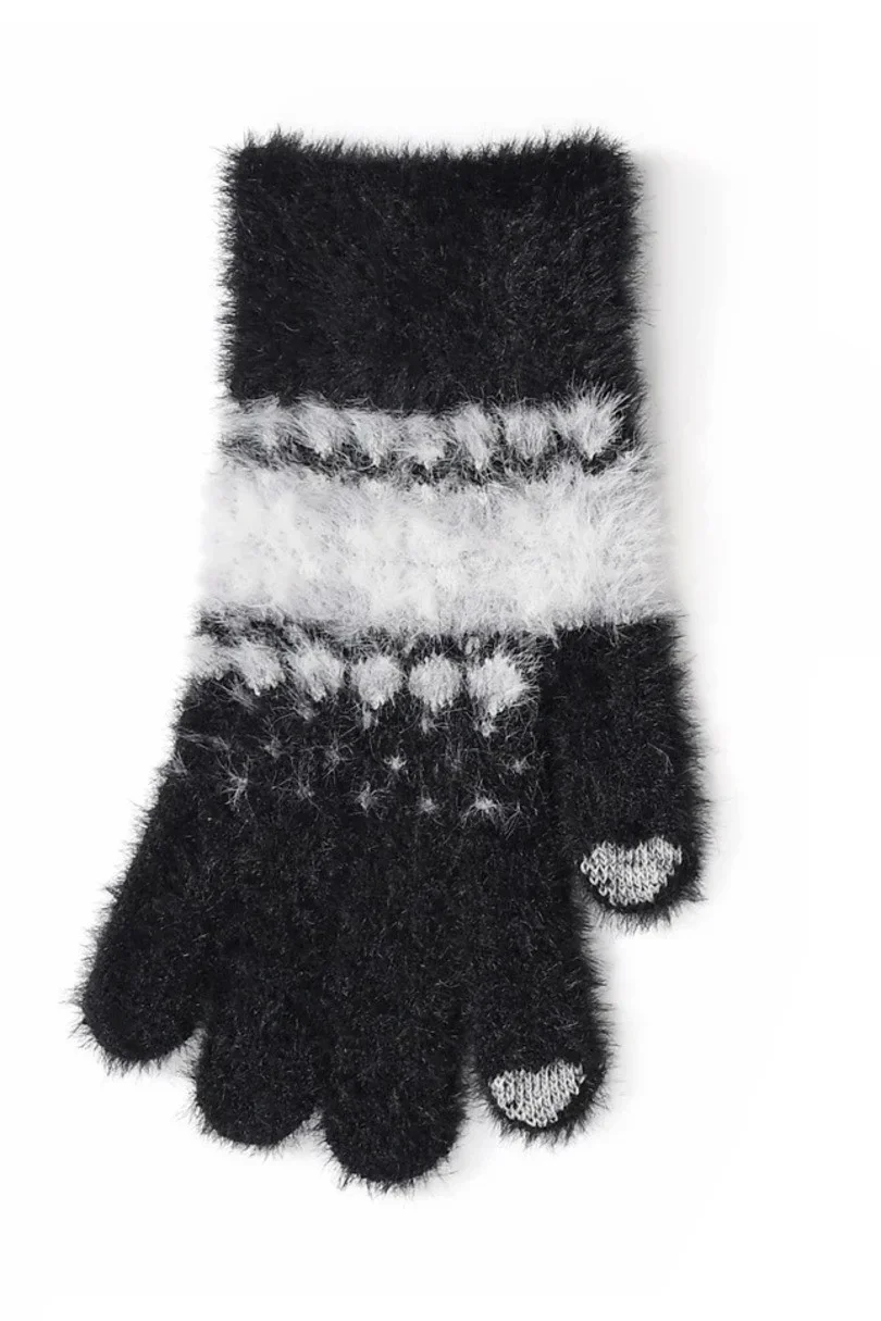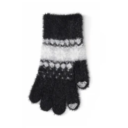 Dámské huňaté rukavice s norským zimním vzorem. Příjemné na dotek, hřejivé a funkční, se speciální vložkou na prstech pro ovládání dotykových displejů.