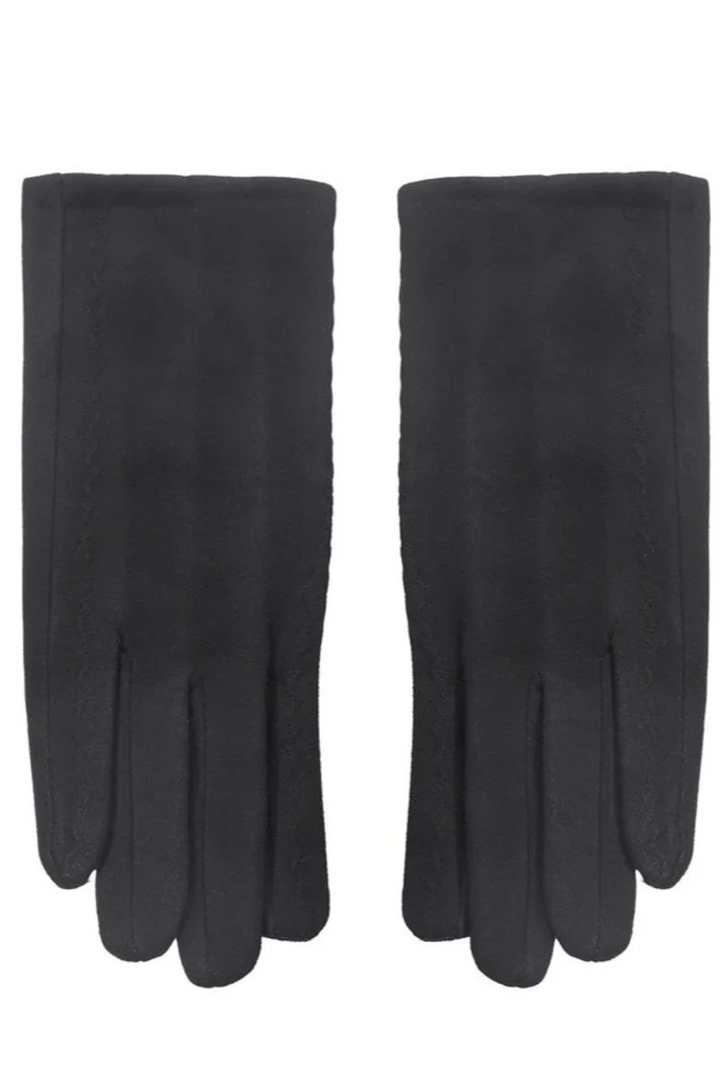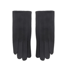 Dámské hladké rukavice. Vyrobené z látky imitující semiš, s příjemným, hřejivým fleecem uvnitř. Ukazováček a palec mají speciální prošití, které umožňuje ovládat telefon bez sundání rukavice.