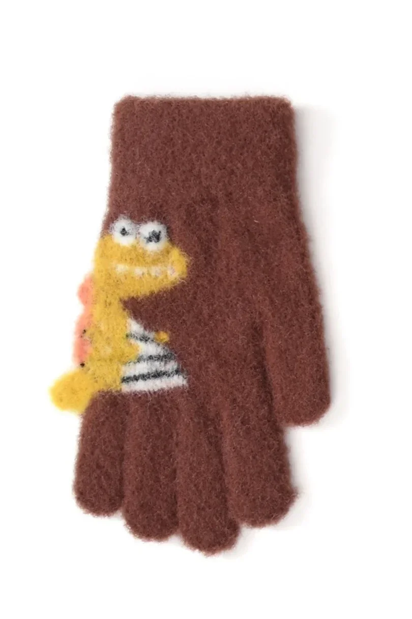 Chlapecké nadýchané rukavice s pěti prsty a 3D motivem Dino.