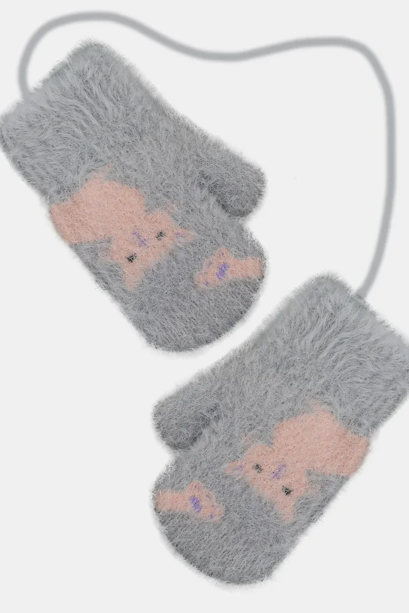 Dívčí nadýchané rukavice spojené šňůrkou.